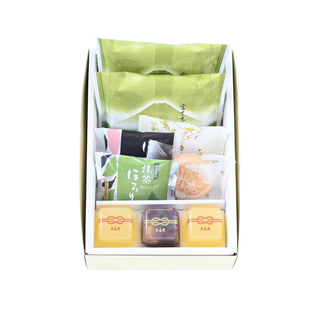 - 富士の大地 2個、百花譜 1個、楽最中 1個、ほろり 1個、抹茶ほろり 1個、栗ぜんざい 1個、すりりんごゼリー 2個